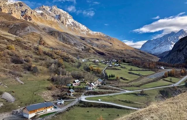 Levons les yeux. De la Sétaz-Vieille descend un torrent redouté autrefois. En face le triptyque des aiguilles d’Arves où les premières traces de brodequins furent laissées par deux Valloirins, les frères Magnin , en 1839… Devant nous, en toile de fond, le bicorne du Grand-Galibier. C’est le protecteur de la vallée, avec Saint Gras et Notre-Dame des neiges invoqués dans les deux chapelles du village. Et là, tout près, sur l’autre versant de la Valloirette, des hardes de chamois broutent l’herbe sous la garde d’un pin cembro solitaire et débonnaire.